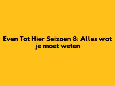 Even Tot Hier Seizoen 8: Alles Wat Je Moet Weten