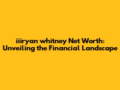 Hey everyone! Today, we're diving deep into the financial world of iiiryan whitney, trying to figure out his net worth. It's always super interesting to peek behind the curtain and see how people in the public eye manage their finances, right? So, buckle up as we explore iiiryan whitney's career, assets, and everything in between to get a clearer picture of his financial standing. Understanding someone's net worth is a bit like putting together a puzzle. We need to look at all the pieces – income sources, investments, assets, and liabilities – to get a complete view. It's not always an exact science, as some details are private, but we can make some educated guesses and paint a pretty accurate portrait. Also, it is not always possible to determine the exact amount, but we will try to provide you with the most accurate information. So, let's jump right in and see what we can find out about iiiryan whitney's financial journey. In this exploration of iiiryan whitney's net worth, we'll aim to cover several key areas. First, we will examine his primary sources of income, which usually include salaries, business ventures, and any other income streams he might have. Next, we will discuss his assets, such as real estate, investments, and personal property, which play a crucial role in determining his overall wealth. It is important to remember that financial information is often private and that any estimates are based on publicly available data and educated guesses. Let's get started!