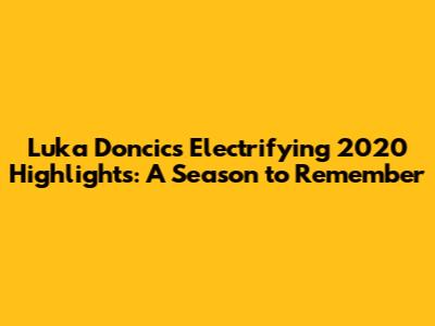 Luka Doncic's Electrifying 2020 Highlights: A Season To Remember