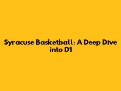 Syracuse Basketball: A Deep Dive Into D1